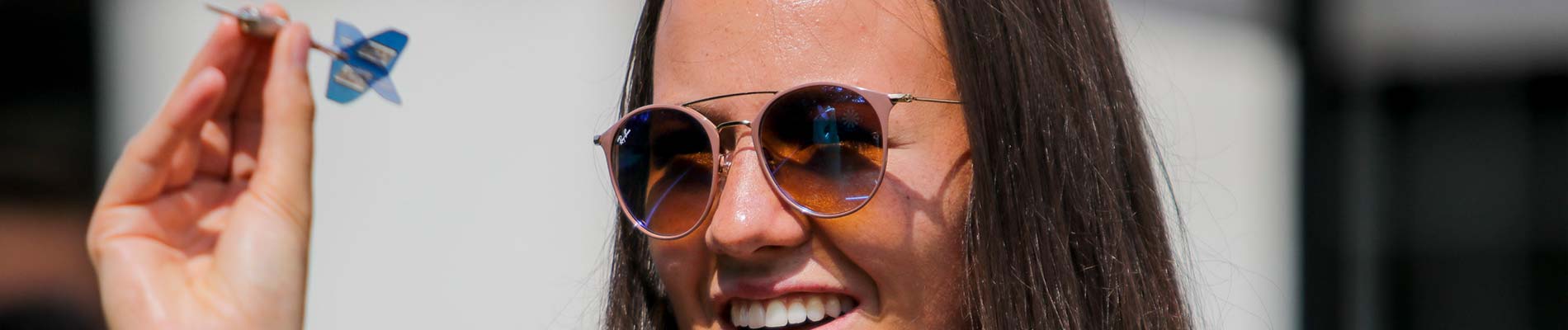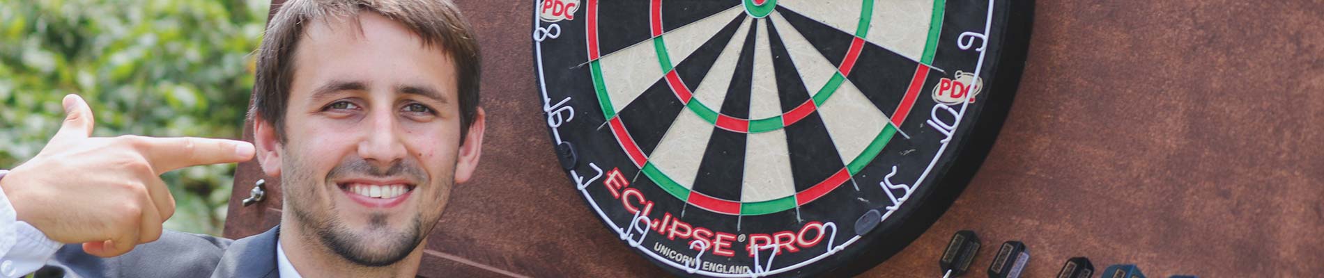 Gespielt wird auf eine Turnier-Dartscheibe. Diese befindet sich auf einem mobilen Gestell und kann daher überall aufgestellt werden.